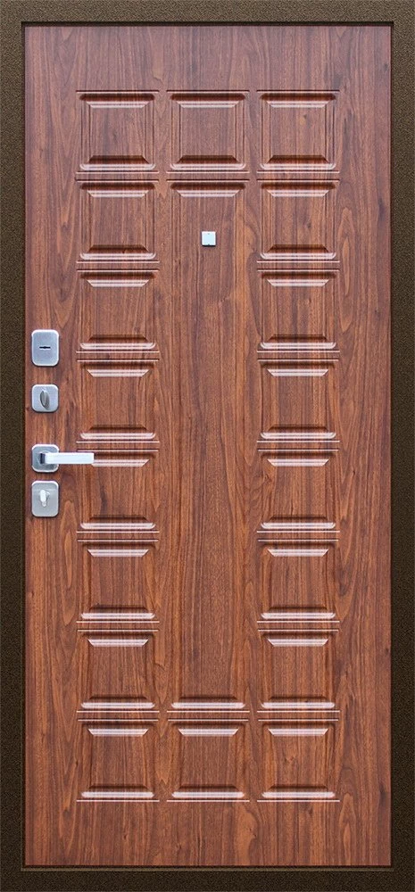 Надежная входная Дверь Спартак Орех темный премиум класса по цене 33 839 руб. Большая толщина стали защитит от проникновения в ваш дом, квартиру или коттедж. Используется очень качественная фурнитура: замки, цилиндры, ручки, защелки. Покрытие и отделка двери изготовлено под внимательным контролем производителя. Дверь имеет долгий срок службы и гарантию.